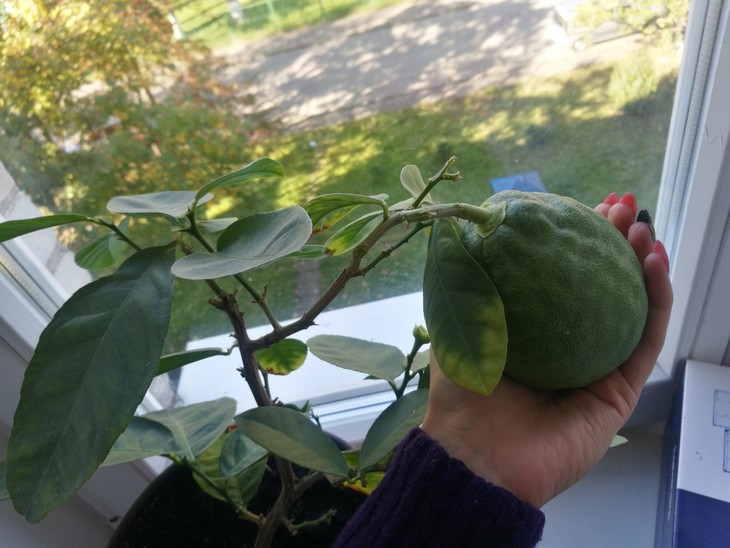 - Плоды размером с ладонь, а деревце - 1,5-2 метра