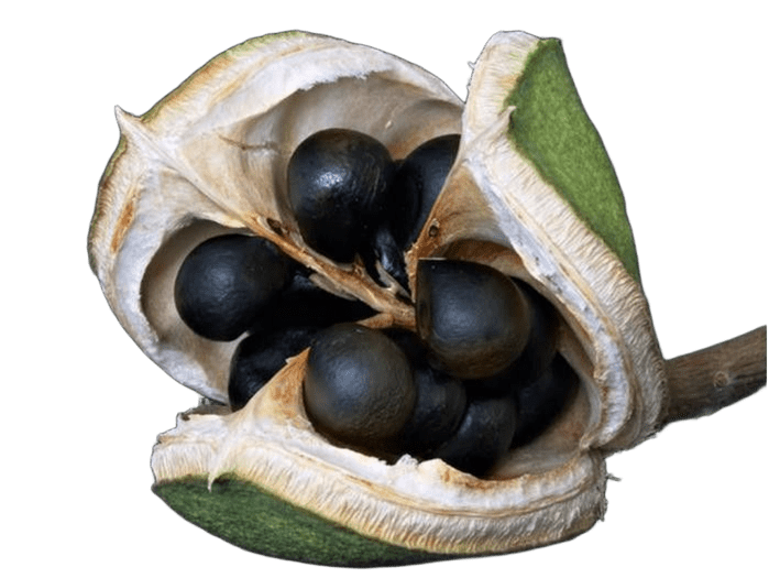 Меваси диаметри 5-7 см атрофида бўлган юмалоқ кўсакчалар бўлиб, ичида 10 тадан 20 тагача истеъмолга яроқли уруғлар бўлади. Пишиб етилганда, қобиқ ёрилади ва хом ва қовурилган ҳолда истеъмол қилинадиган тўқ жигарранг ёнғоқларни очади. Улар фойдалилиги ва таъми билан ажралиб туради.
