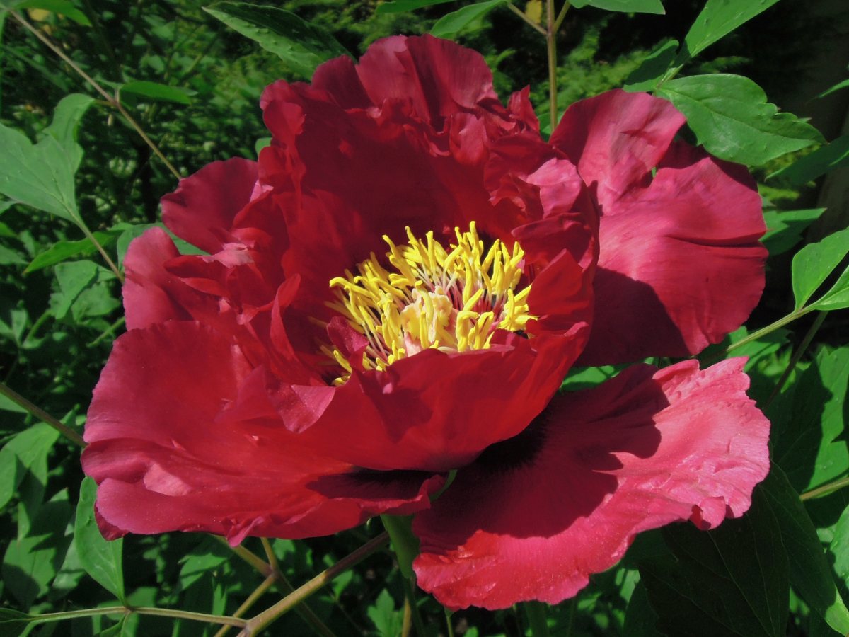 Древовидный пион отличается крупными размерами. Имеет хорошую морозостойкость.