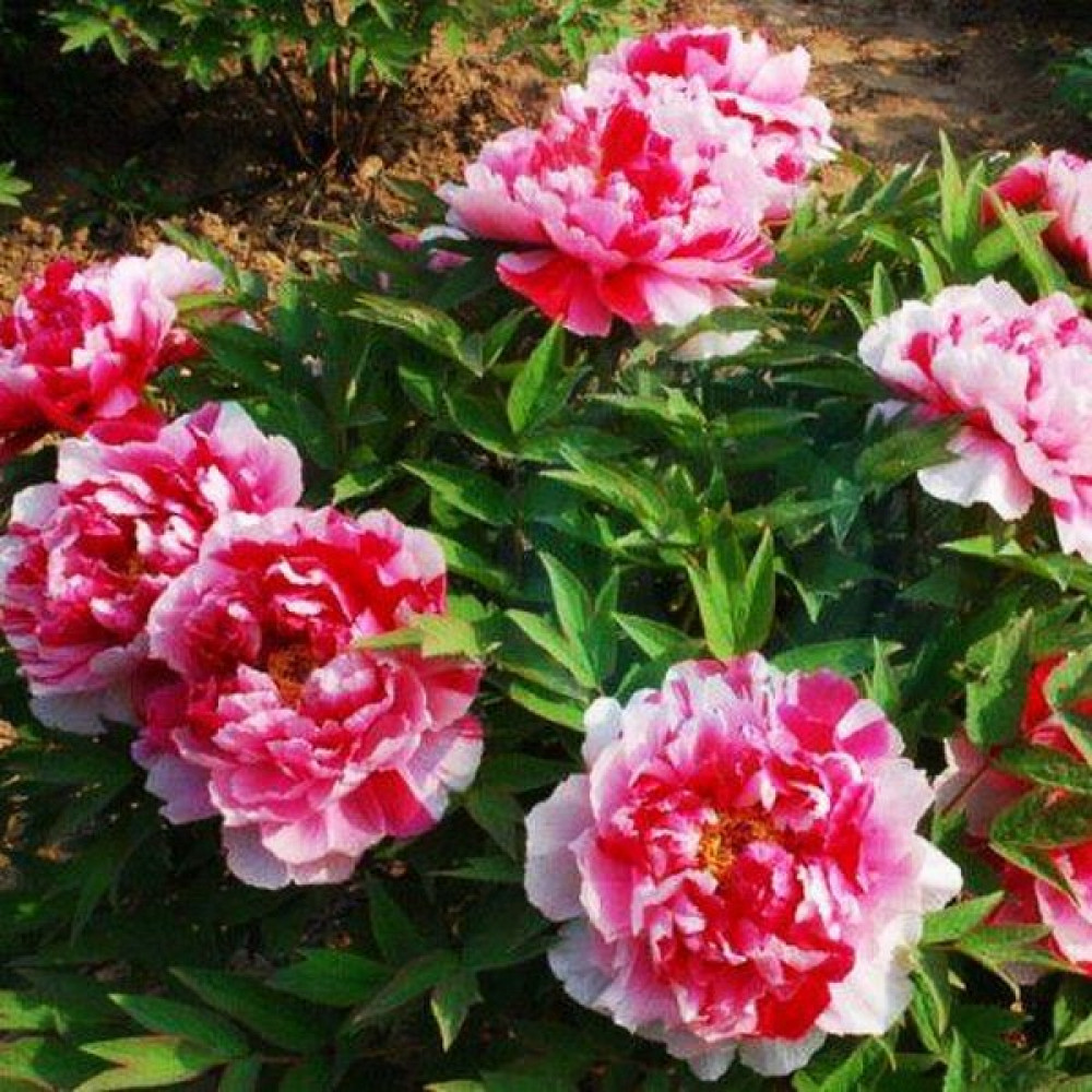 Пион встречается также под названием Красно-Белый. Обладает достаточно компактными размерами, имеет крепкие густо облиственные стебли.