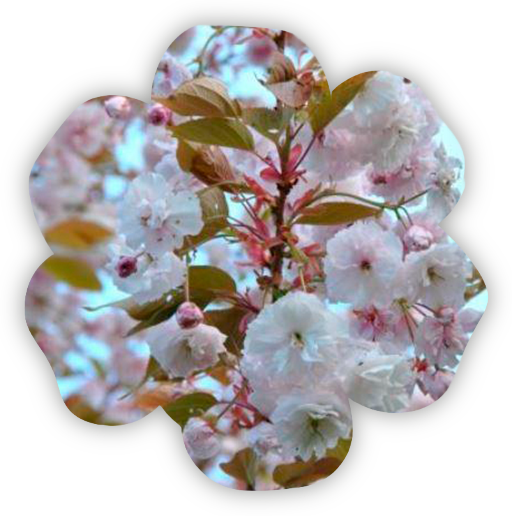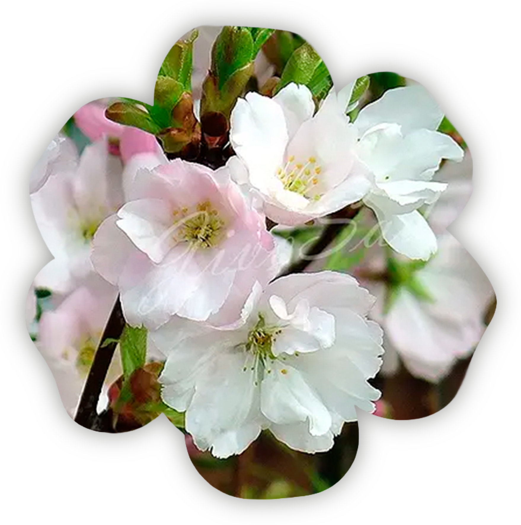 Сакура "Shogetsu" энг нафис навлардан бири ҳисобланади. Куртаклар узун гулдонларда ярим жуфт оқ-пушти хушбўй гуллар билан қопланган.