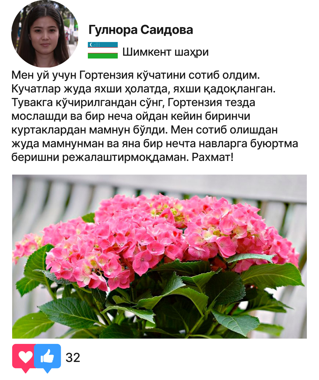 Премиум гортензия кўчатларини супер нархда буюртма қилиш имкониятини бой берманг