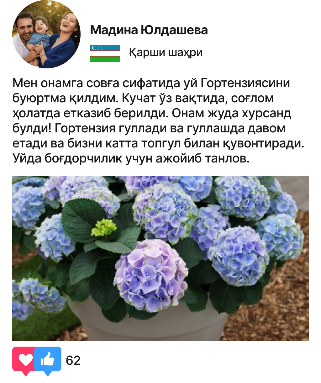 Ўзингизнинг эксклюзив гортензияларингизни ўстиринг ва ҳар куни чиройли гуллардан баҳраманд бўлинг!